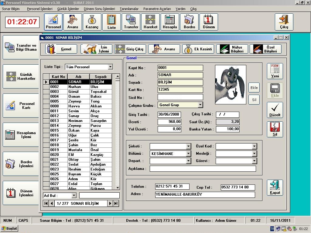 Personel Takip Sistemlerinde (Personel Devam Kontrol Sistemlerinde) kullandığımız bütün cihazlar, şirketimiz bünyesinde yazılmış ve geliştirilmiş olan SONAR Personel Takip Yazılımı ile entegreli bir şekilde çalışmaktadır. Mevcut programımız tamamen Türkçe ve esnek bir yazılımdır. Her türlü çalışmaya uygundur, ayrıca karışık vardiyalı sistemlerde dahi sorunsuz bir şekilde çalışmaktadır. Her türlü cihazla uyum sağlayabilir. Windows işletim sistemlerinde çalışmakta olup, network üzerinde birden çok kullanıcı tarafından aynı anda kullanılabilmektedir. Ayrıca sizin özel istekleriniz de değerlendirilip, mevcut yazılıma entegre edilebilmektedir.